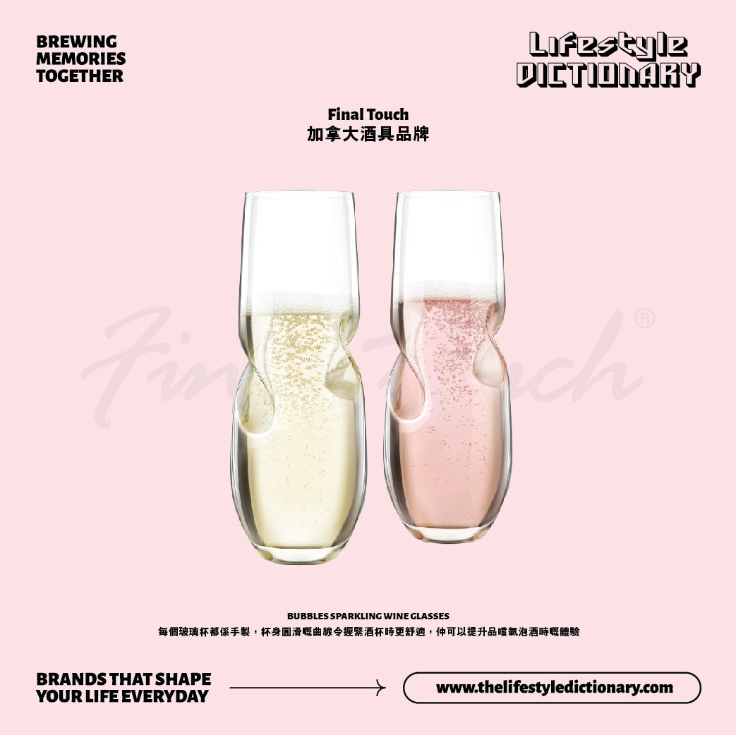 「再好嘅酒,都必需一個能令味道昇華的容器。」唔好睇小一個杯仔嘅作用啊!特別係鐘意酒嘅你一定唔會唔知香氣、溫度同味道都係咁重要。無論你鐘意飲咩酒, Final Touch 都一定會有合適你嘅酒具,就係咁齊全,就係咁貼心。