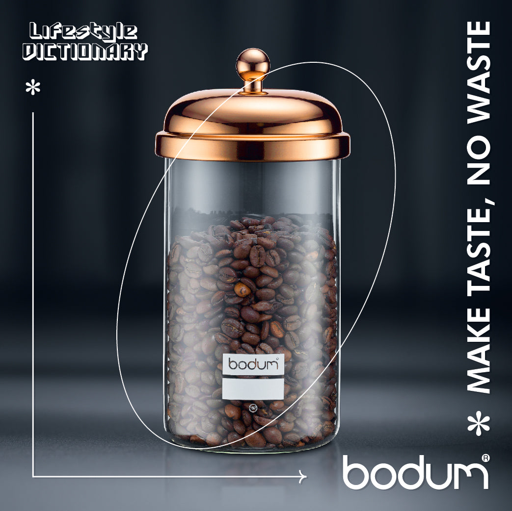 This sleek storage jar features a modern, vacuum-sealed lid that ensures its contents are kept perfectly fresh, while complementing items in the Bodum CHAMBORD range.