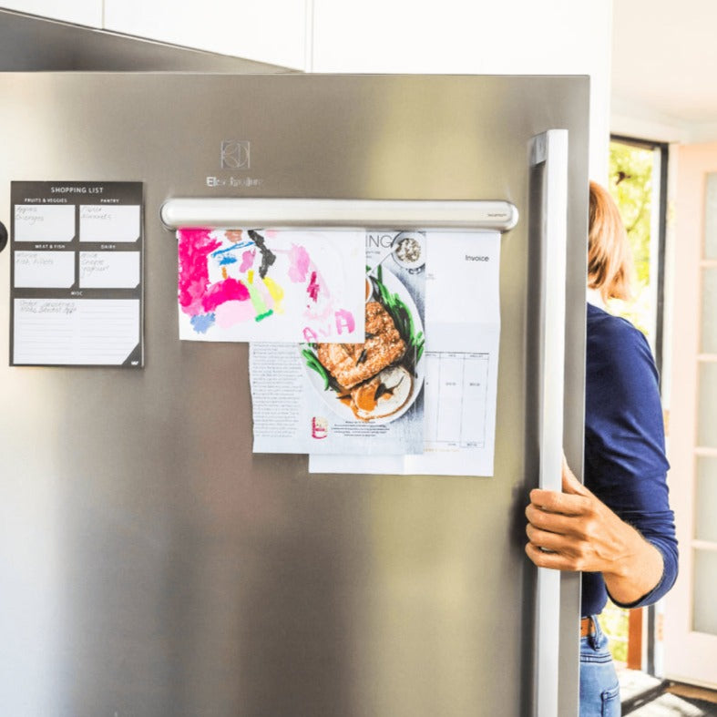 Catch and release.<br />Gripet’s quick grip and release system allow you to insert and remove up to 3mm of notes swiftly and easily.<br />Unmarked territory.<br />Gripet leaves notes unmarked by securing them with friction and gravity instead of glue, pins, tape, clips, or magnets.<br />Spark joy.<br />Gripet keeps notes, memos, photos, bills, and bulletins together and organized.<br />Perfectly placed.<br />Gripet is great for fridge doors, filing cabinets, offices, in the home, or anywhere you keep your notes.<br /><br />Care Instructions<br />Clean Gripet by wiping with a damp cloth.<br /><br />Product Details<br />Length: 40cm / 15.7"<br />Width: 4.8cm / 1.9"<br />Weight: 0.23kg / 0.51lb<br />Materials: ABS plastic. Includes magnetic and adhesive mounts.<br />