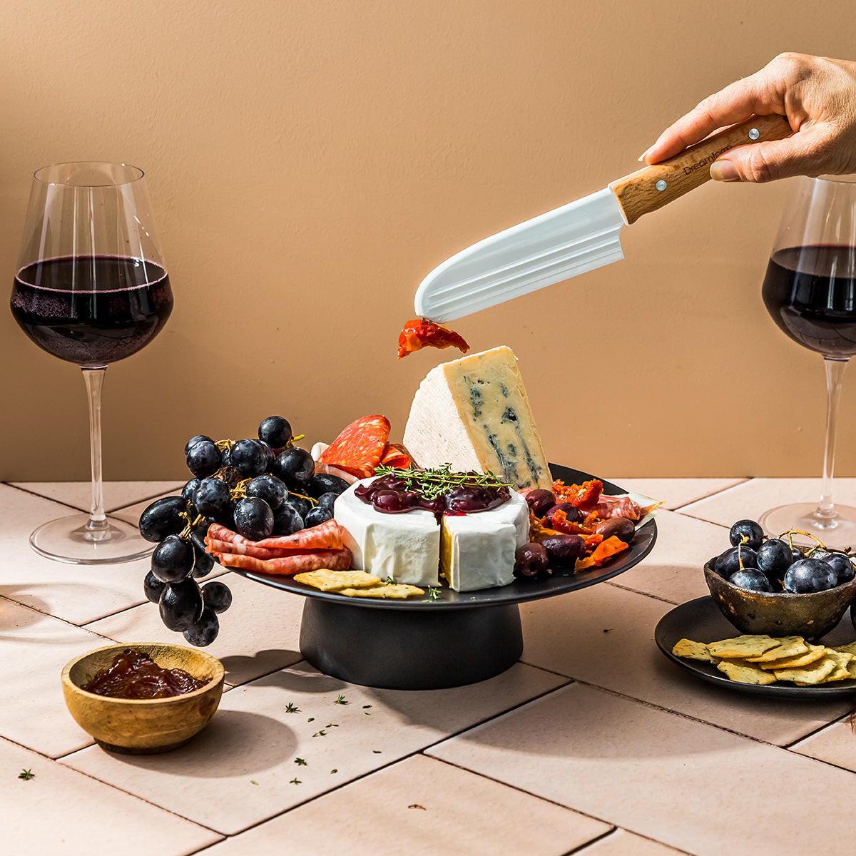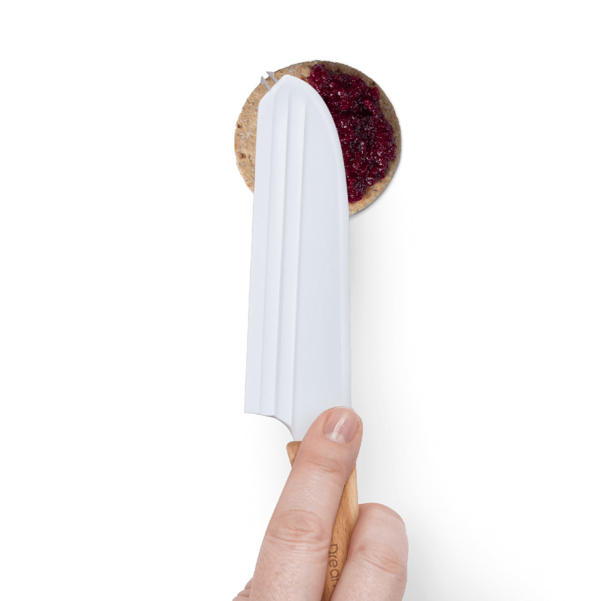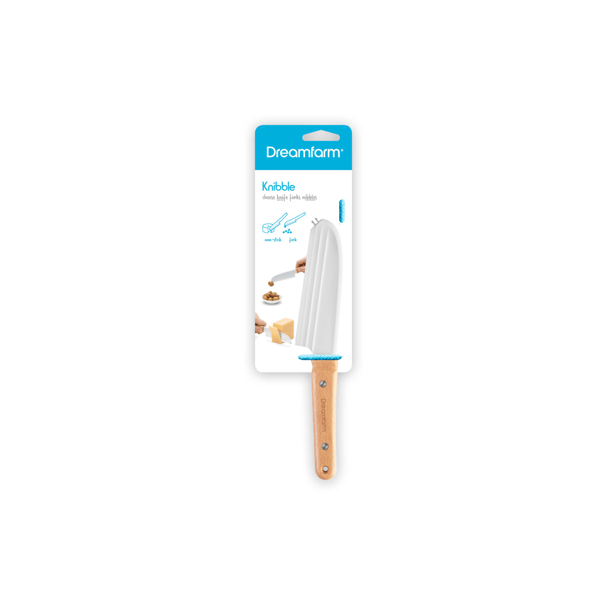 Never a sticky situation.<br />Knibble’s unique barbed blade creates air pockets to stop cheese from sticking.<br />Forking brilliant.<br />Stainless steel forks are perfect for serving and don’t extend beyond the profile of the blade for safety.<br />All spread and done.<br />Rounded top edge of blade spreads without tearing up bread and scrapes every last bit from plastic containers without scratching them.<br />It don’t get cheddar than this.<br />Durable forks and plastic blade stay sharp and will never rust.<br /><br />Care Instructions<br />Wooden handle not suitable for dishwasher. Hand wash only.<br /><br />Product Details<br />Length: 23cm / 9.1"<br />Width: 4cm / 1.6"<br />Weight: .031kg / 0.07lb<br />Materials: Beechwood and Nylon