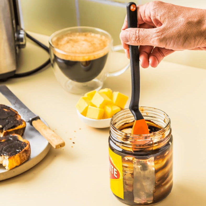 Chopula is an award-winning spatula that is not only thin and flexible for flipping from the front, but also strong for chopping on its side. Chopula’s clever handle design also sits its head up off your kitchen bench when you put it down.
