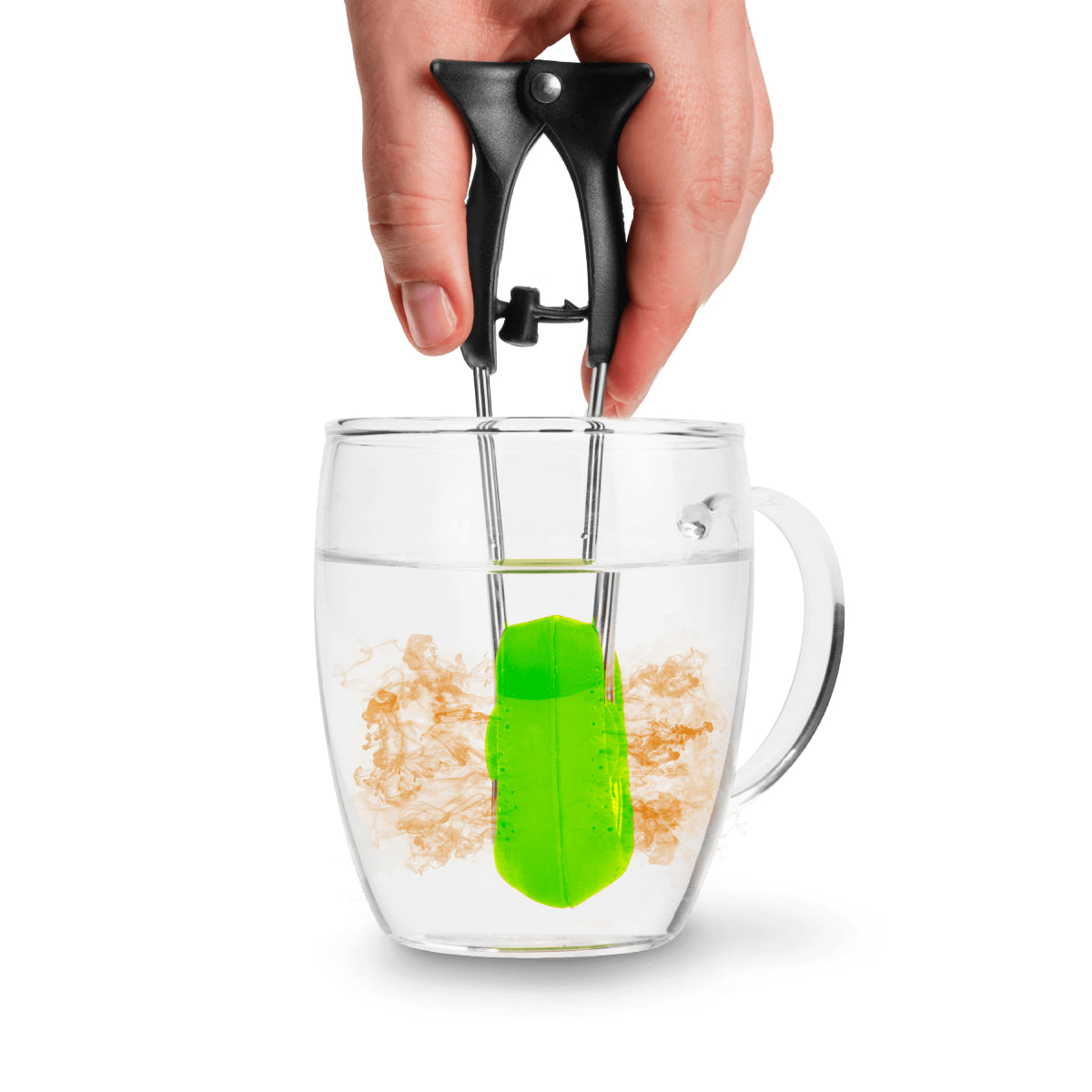 Brew your tea faster by squeezing Teafu’s flexible silicone pod, forcing water to circulate through your tea leaves and extract the flavor.